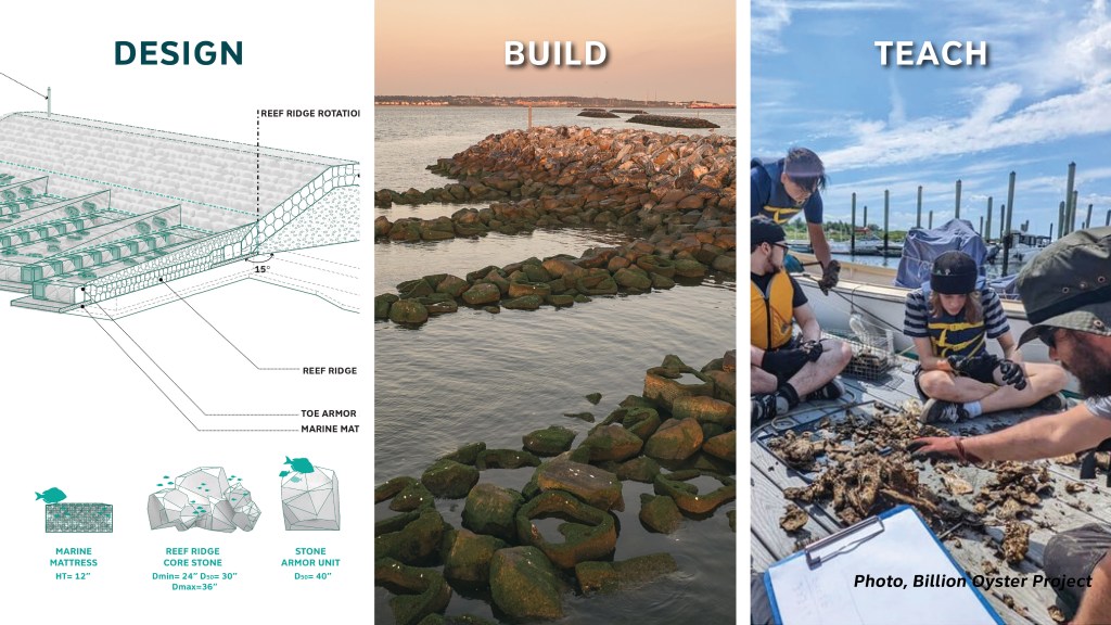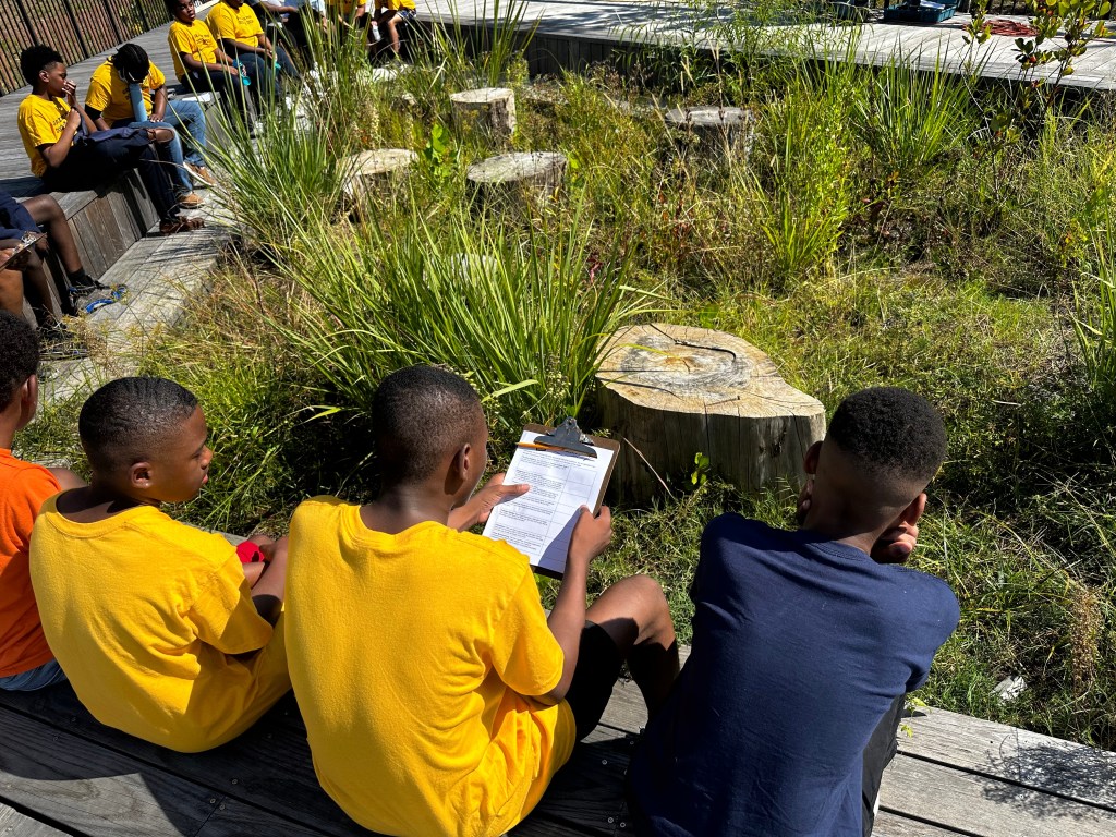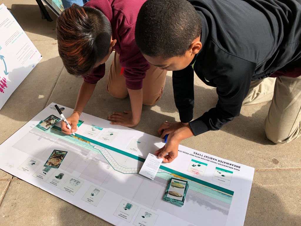 Students learn about the different habitats and marine life on the Living Breakwaters. Photo, SCAPE.