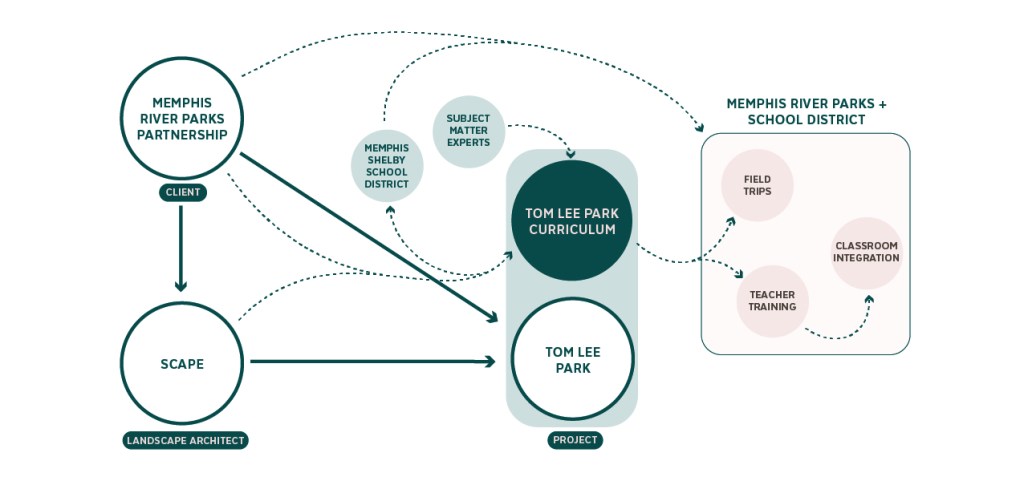 Celebrated as a national model for inclusive placemaking and ecologically restorative urban design, Tom Lee Park—once a vast expanse of open lawn—is now a vibrant, welcoming destination that reconnects Memphians with their riverfront. In 2023, SCAPE and the Memphis River Parks Partnership developed a curriculum to highlight the park as a living laboratory and learning landscape, offering local students hands-on learning experiences and citizen science projects in their new riverfront park.